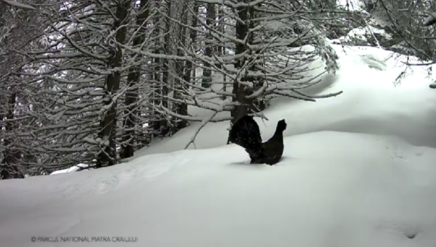 Un moment rar din viața sălbatică a fost surprins recent în Parcul Național Piatra Craiului, unde camerele de supraveghere au înregistrat un cocoș de munte în plin ritual de împerechere. Imaginile, publicate pe pagina oficială de Facebook a administrației parcului, surprind sunetele și comportamentul specific acestei perioade spectaculoase din an.